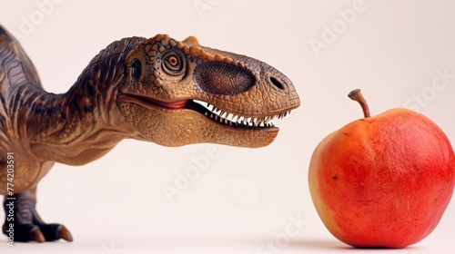 3D render of Tyrannosaurus rex dinosaur with apple