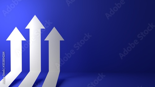 3D Rendered business arrow up direction concept to success target. Finance growth vision stretching rising up. Return on investment ROI. chart salary increase profit background for banner or website