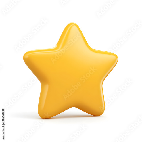 3D rendered cute yellow star on white background. Ideal for children’s designs, games, rating visuals, and playful educational content. Bright, cheerful, and simple.