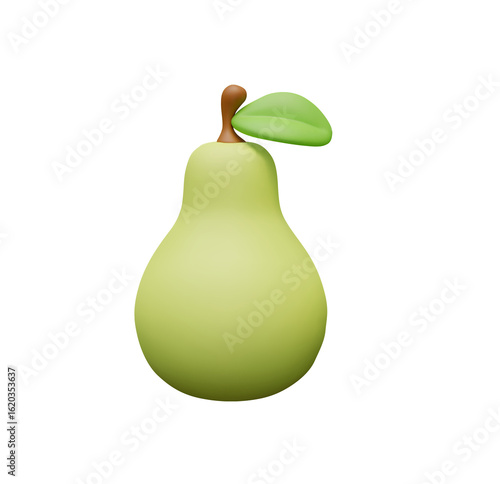 3D Rendered Green Pear, Minimalist Style