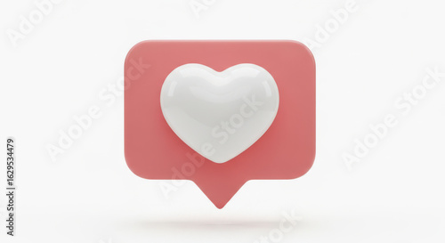 3D Rendered Heart Icon Inside Speech Bubble Representing Appreciation, Support, and Positive Feedback in a Modern Style for Social Media and Communication