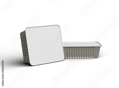 3d rendered image of a small rectangular food foil tray isolated on a transparent background