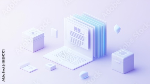 3D Rendered Laptop with Documents, Minimalist Scene for Productivity