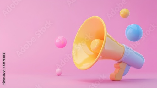 3D Rendered Megaphone and Colorful Balls on Pink Background