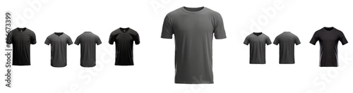 3D rendered men's short sleeve T-shirt mockup set, transparent background, ideal for overlaying designs.
