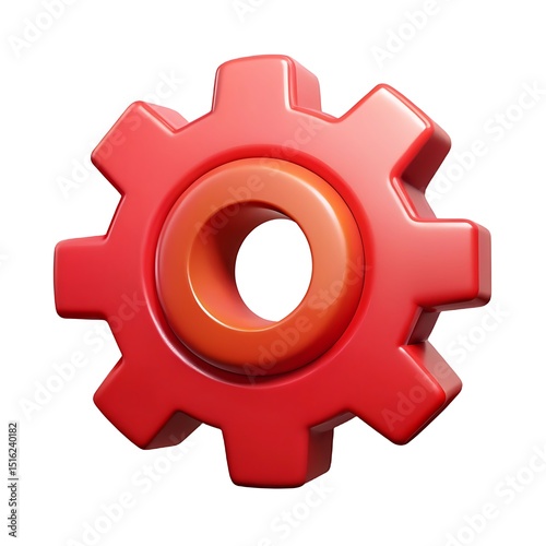 3d rendered red gear icon representing settings and configuration on white background