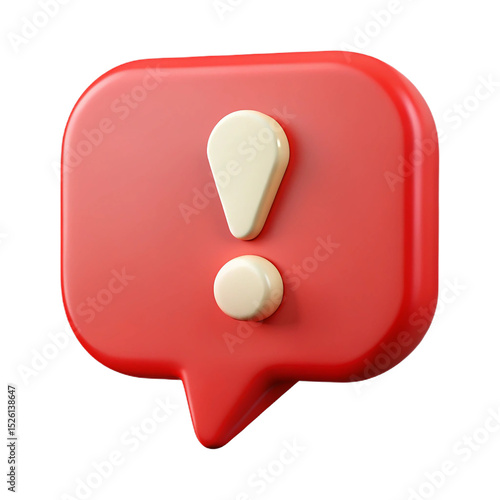 3d rendered speech bubble with exclamation mark representing alert and notification