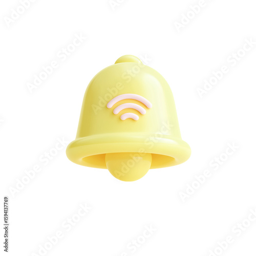 3d rendered yellow notification bell icon with wi fi symbol isolated on transparent background
