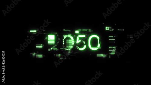 3D rendering 2050 text with screen effects of technological glitches