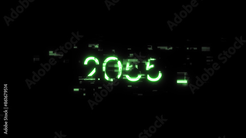 3D rendering 2055 text with screen effects of technological glitches