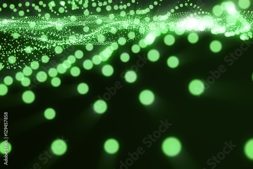 3d rendering abstract landscape background. Cyberspace grid. 3d technology, Flow, Wave, Green Lines and dots.