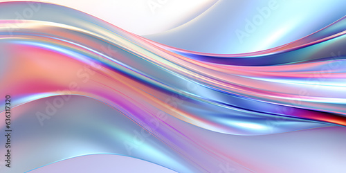 3d rendering Curve Silver Holographic Fluid Liquid Wallpaper. Silver Metal Color Swirl Gradient Mesh. Pale Violet Vivid Vibrant Smooth Surface. Blurred Water Multicolor Neon Background Generative Ai