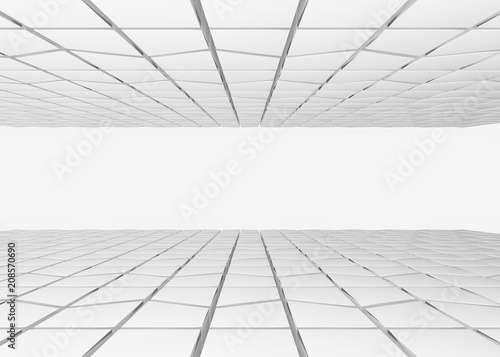 3d rendering. gray trapezoid shape pattern tiles ceiling and floor background.