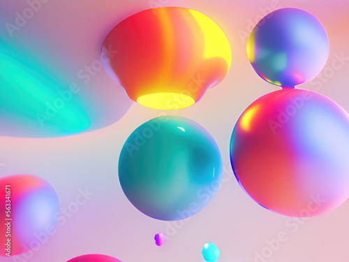 3d rendering illustration of abstract vibrant colored shapes background. Ai generative art.