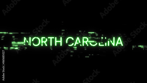3D rendering North Carolina text with screen effects of technological glitches