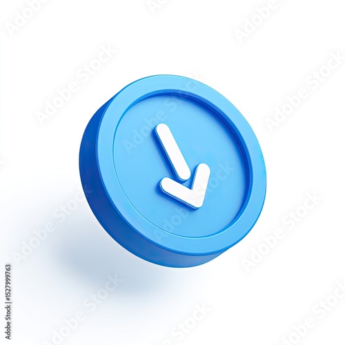 3D rendering of a bright blue circle button with a downward-pointing arrow
