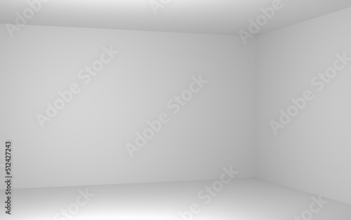 3D rendering of a corner of a room with an empty space background. White background with light white walls and white floor