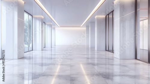 3d rendering of a corridor with white walls and marble floor