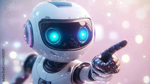 3D rendering of a cute robot character pointing a finger, Cute baby robot