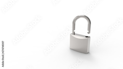 3d rendering of a grey padlock isolated in white studio background