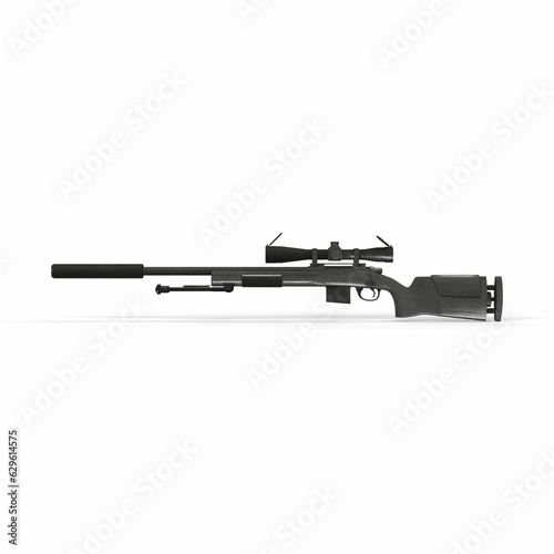 3d rendering of a modern automatic rifle with a telescopic sight on white background