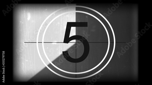 3D rendering of a monochrome old and grained universal countdown leader from 10 to 0