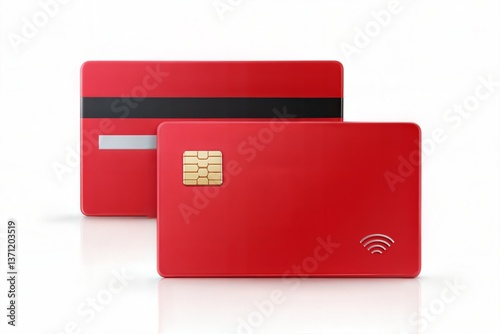 3D rendering of a red credit card, symbolizing banking and financial transactions. (3d-icon)