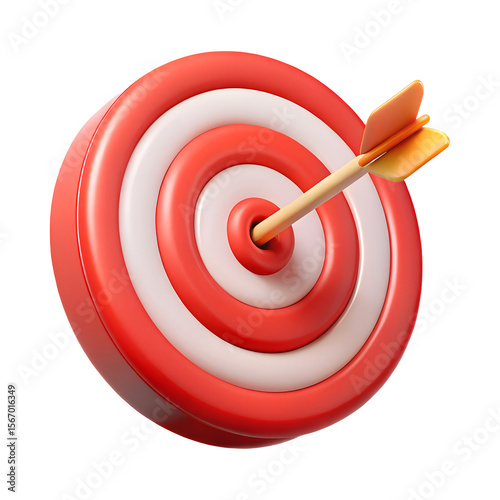 3D rendering of a red target with an arrow in the cente isolated on transparent white background, clipping path
