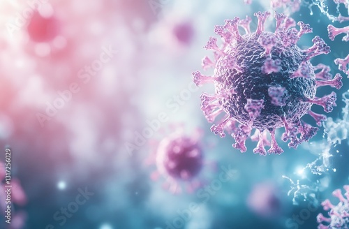 3D rendering of a soft background with an abstract representation of some coronavirus cell lines in the foreground.