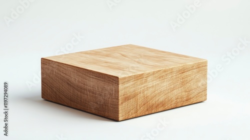 3D rendering of a wooden cube podium on a white background with a soft shadow and light for displaying a product or design mock-up, an abstract minimal concept. Stock photo.