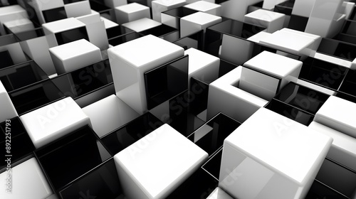3d rendering of black and white abstract geometric background. Scene for advertising, technology, showcase, banner, game, sport, cosmetic, business, metaverse. Sci-Fi Illustration. Product display