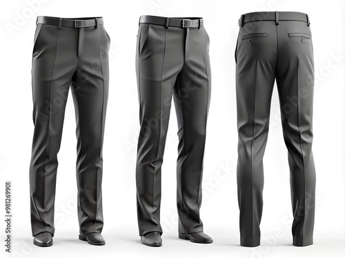 3D rendering of blank black mens pants mockup from different views Isolated mockup of classic loungewear jeans for males. AI Generative