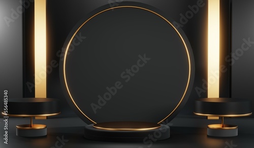 3D rendering of blank product background for cream cosmetics Modern black podium background