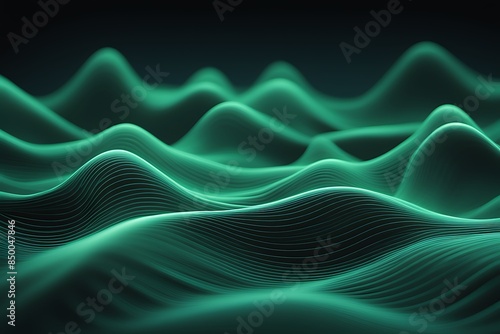 3D rendering of dynamic wave background with green dots, futuristic flow, technology, abstract datum, innovation, sound illustration, business, digital music, dot texture, science pattern, techno grid