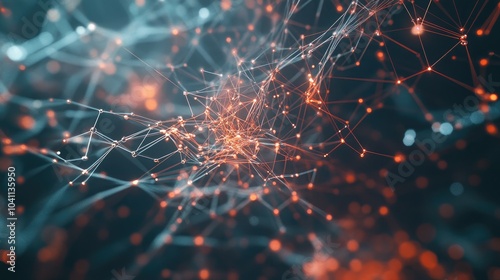 3D rendering of interconnected lines and dots set against a backdrop related to chemistry