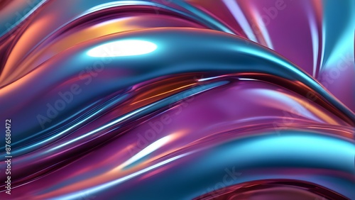 3D rendering of iridescent, wavy, metallic surface with pearlescent hues.