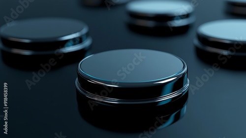 3D rendering of mercury interface buttons sleek and modern design set against a minimalistic background highly detailed and reflective