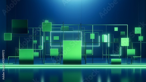3d rendering of mind green and blue abstract geometric background. Scene for advertising, technology, showcase, banner, game, sport, cosmetic, business, metaverse. Sci-Fi Illustration. Product display