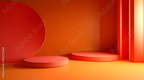 3d rendering of Orange and red abstract geometric background. Scene for advertising, technology, showcase, banner, game, sport, cosmetic, business, metaverse. Sci-Fi Illustration. Product display