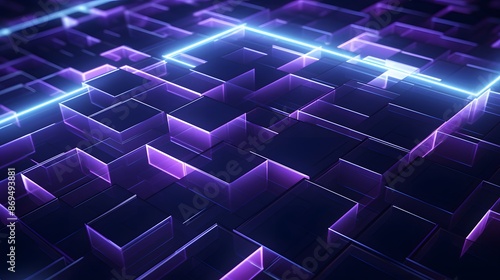 3d rendering of purple and blue abstract geometric background. Scene for advertising, technology, showcase, banner, game, sport, cosmetic, business, metaverse. Sci-Fi Illustration. Product display