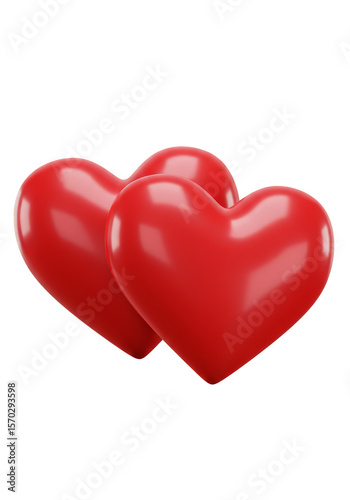 3D Rendering of Two Red Hearts Symbolizing Love on Transparent Background
