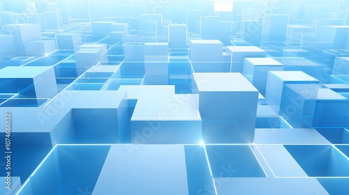 3d rendering of white and blue abstract geometric background. Scene for advertising, technology, showcase, banner, game, sport, cosmetic, business, metaverse. Sci-Fi Illustration. Product display