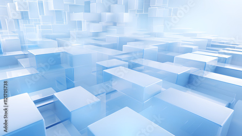 3d rendering of white and blue abstract geometric background. Scene for advertising, technology, showcase, banner, game, sport, cosmetic, business, metaverse. Sci-Fi Illustration. Product display