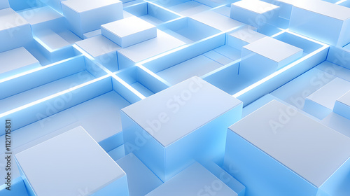 3d rendering of white and blue abstract geometric background. Scene for advertising, technology, showcase, banner, game, sport, cosmetic, business, metaverse. Sci-Fi Illustration. Product display