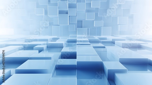 3d rendering of white and blue abstract geometric background. Scene for advertising, technology, showcase, banner, game, sport, cosmetic, business, metaverse. Sci-Fi Illustration. Product display