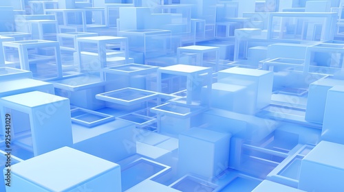 3d rendering of white and blue abstract geometric background. Scene for advertising, technology, showcase, banner, game, sport, cosmetic, business, metaverse. Sci-Fi Illustration. Product display