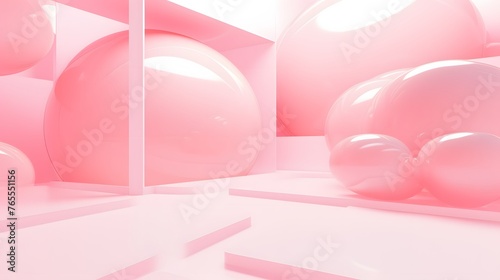 3d rendering of white and pink abstract geometric background. Scene for advertising, technology, showcase, banner, game, sport, cosmetic, business, metaverse. Sci-Fi Illustration. Product display