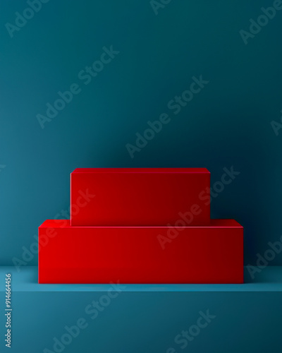 3D rendering of winners podium with three pedestals and confetti falling on blue background
