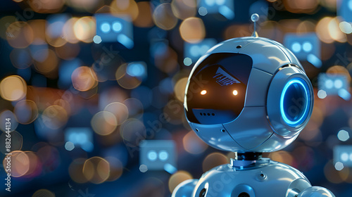 3d rendering. Smiling robot with mock up texts bubbles and messages