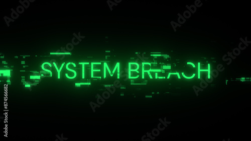 3D rendering system breach text with screen effects of technological glitches